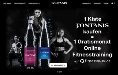 Käufer von FONTANIS Mineralwasser erhalten einen Gutschein für einen Gratismonat Online-Fitnesstraining. Die Kooperation mit fitnessraum.de verbindet Hydration mit Fitness.