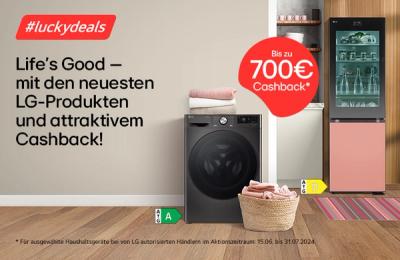 100 € Cashback als Energiebonus beim Kauf ausgewählter LG Kühl-/Gefrierkombinationen – ein klarer, verständlicher Mehrwert, der direkt am POS wirkt. Gerade in einem stark umkämpften Segment macht dieser Bonus einen entscheidenden Unterschied und setzt einen überzeugenden Kaufimpuls.