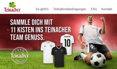 Mit Teinacher setzen wir anlässlich der EM im eigenen Land eine ganz besondere Aktion um - die Teinacher Team Genuss Sammelaktion! Mit 11 Kisten über das ganze Sortiment kann jeder Teilnehmer sich bis zu zwei hochwertigen Adidas Trikots mit Teinacher Branding ersammeln. Dabei ist sogar eine zusätzliche Personalisierung in Form von einer Beflockung der Rückseite möglich.